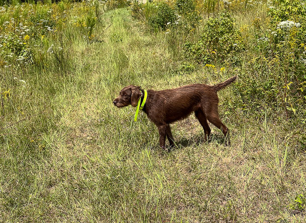 We are a pudelpointer breeder located in Northern California. We bought our first Pudelpointer puppy, Callie, in 2010. Thanks to that fuzzy, energetic, and always happy pup we have embraced the breed and thoroughly enjoy sharing the joys of the Pudelpointer with other families. We have been breeding Pudelpointers since 2013 and are currently located in McKinleyville, CA. In our 12 years of breeding experience we have developed our line to preserve the characteristics and quality of this breed that we love so much. Our foremost goal is to provide outstanding dogs in the field and at home for hunters and their families. When breeding, we work to pair dogs that will produce healthy, amenable, and cooperative pups that will have phenomenal performance in the field while also being calm and gentle in the house. More about our breeding philosophy can be found on our Puppy page.
